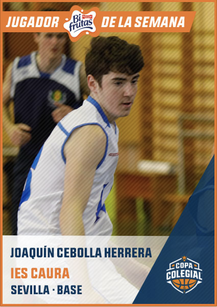 Que el IES Caura es uno de los equipos favoritos para reeditar el triunfo cosechado en 2018 en la Copa Colegial Sevilla no es ningún secreto. En parte gracias a la talentosa plantilla que tienen. La abrumadora victoria de cuartos de final ante Santa Ana (57-17) les pone en semis y uno de sus jugadores más destacados fue el dorsal 16, Joaquín Cebolla Herrera, base nacido en 2002. Joaquín tiene una muñeca repleta de magia. En total suyos fueron once de los puntos cosechados por su equipo, segundo máximo anotador tras José Carlos Ruiz –MVP Copa Colegial Sevilla 2018–. Jugador muy elegante con la pelota entre sus manos y un triplista experto. Director de orquesta de Caura con un ramillete surtido de asistencias y robos. Un jugador con mayúsculas, de esos por los que vale la pena sentarse en la grada para disfrutar del baloncesto. Joaquín ha deslumbrado en esta ronda del torneo.