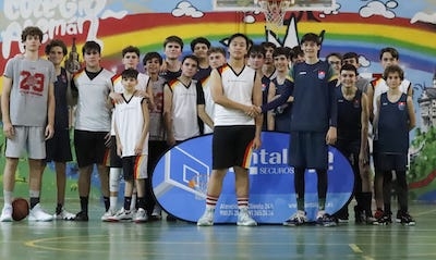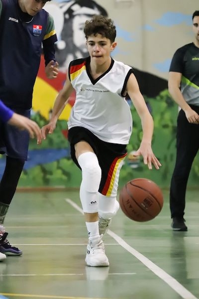 Los segundos ocho minutos iban a comenzar como los primeros, con dos puntos de Carranza, que ya comenzaba a erigirse como la figura del partido. Justo después de eso, llegó otro de los momentos más especiales del choque. Con apenas 1'53m., Pedro Medina, cuya inferioridad física era tan evidente como su descaro en la cancha, anotó un triplazo de los que, a buen seguro, serán recordados como antológicos en esta Copa Colegial Sevilla 2023 y mostraba sus grandes cualidades deportivas ante jugadores de mucha más altura. También su compañero, Aníbal González, con unas características físicas totalmente opuestas y 1'95m., anotaba tras un rebote ofensivo con el que demostraba su superioridad. Pero los alemanes nunca se rinden y apareció el pívot Jin Hong Chu para encestar dos canastas seguidas en un ejercicio de pundonor, y recortar distancias. Antes de llegar al descanso, una canasta de Mauro Fontivero y un tiro libre anotado por Guillermo Ruiz-Lapuente fueron las únicas novedades en un marcador que llegó al intermedio con una mayor diferencia visitante (7-19).