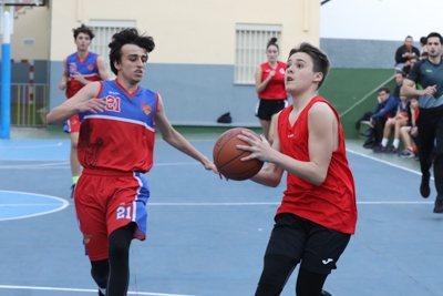 Vibrante partido en la pista azul del colegio Safaur, donde los locales midieron sus fuerzas con el instituto Velázquez. Azulgranas y rojinegros dieron un buen espectáculo a los aficionados, que llenaron las gradas del centro nervionense. La climatología también acompañó y permitió una agradable tarde de baloncesto.