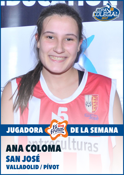 Ana Coloma, con su partidazo del pasado viernes ante Corazonistas, se ha situado en el Olimpo numérico del Colegio San José. Y es que ostenta el liderazgo histórico en anotación y rechaces de su colegio, llegando a una media de 11 puntos y 10 rebotes por partido en todos los partidos que ha disputado en la Copa Colegial Valladolid.