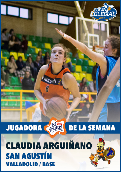Claudia cumple su segunda participación en la Copa Colegial y, tras un sabor agridulce en 2016, cayendo en cuartos de final, aspira a que esta edición sea la definitiva para que las chicas de San Agustín alcance, por fin, la Gran Final. Para ello, las Espartanas han tenido que superar ya dos escollos (es el único equipo, masculino y femenino, que ha disputado dos encuentros hasta la fecha) representados en las vigentes subcampeonas de Apostolado y las debutantes de La Salle. En ambos partidos, Claudia Arguiñano fue vital para su equipo pero fue ante las Labradoras donde mostró su potencial anotador, consiguiendo 20 puntos y estableciendo el récord anotador en categoría femenina en lo que llevamos de año.