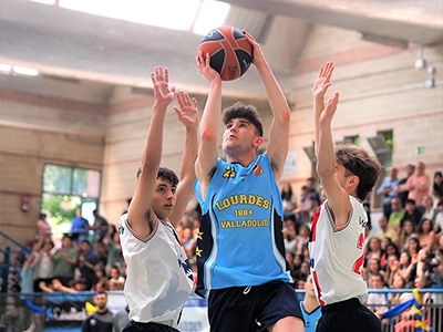 Minutos antes del arranque del partido la grada ya estaba a rebosar, los más tardones tuvieron que ver el encuentro de pie, las gargantas estaban preparadas y acompañadas de tambores, bocinas y hasta flautas. Arropado por su público, el Lourdes no pudo empezar mejor el encuentro con un inmenso Miguel Abejón que con sus dos metros de estatura dominó la pintura en ambos lados de la pista. Minutos más tarde le tomó el relevo el MVP de este torneo, Juan Rodríguez Neri, con sus triples puso distancia en el marcador, pero Miguel Ayala contestó para evitar que la diferencia fuera a mayores.