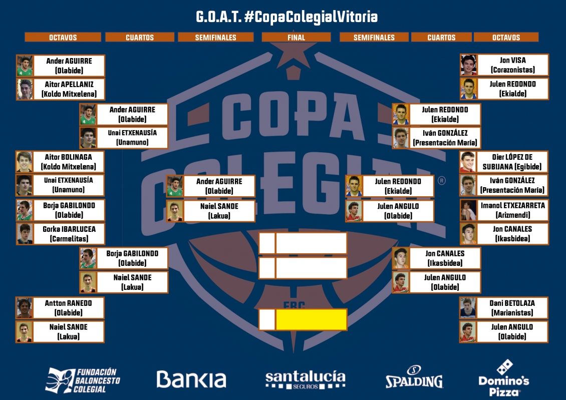 Así está el cuadro a falta solamente de dos eliminatorias para conocer a la G.O.A.T. de Copa Colegial Vitoria:
