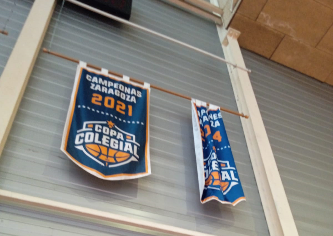 El pasado sábado tuvo lugar un emotivo acto en el pabellón del colegio Compañía de María, en el que el Estandarte conquistado por el equipo masculino el pasado 22 de marzo se unió al que ya colgaba desde el año 2021, cuando las chicas que entrenaba Irene Serrano se alzaron con el que fue su primer título de Copa Colegial.