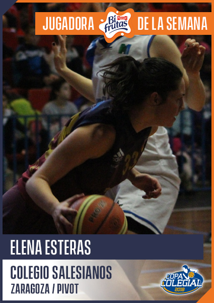 Elena Esteras, pívot de Centurionas Salesianos lideró a su equipo para llevarlo hasta las semifinales en una magnífica victoria en una pista nada fácil, la de Leonas Marianistas. Elena consiguió anotar 18 puntos, con un absoluto dominio del juego interior materializado en otros 18 rebotes y tres asistencias a sus compañeras. Ya en 2017 fue una de las jugadoras más destacadas de la competición, siendo MVP Wibo de la Gran Final femenina y siendo seleccionada para representar a su colegio en el All Star. El número 33 es sinónimo de Elena Esteras en la Copa Colegial, un número que espera lograr el primer Estandarte para las Centurionas en este 2017. En semifinales tendrán una difícil prueba ante Hipos Compañía de María para iniciar el asalto al título.