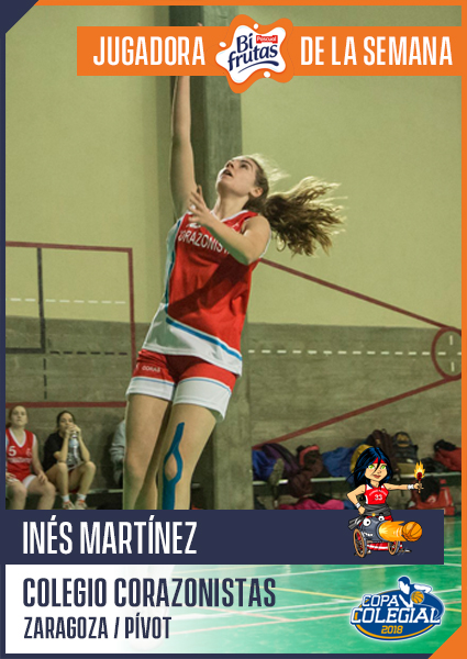 Y doña Inés... no de Ulloa en este caso, sino Martínez. Pívot de Cañoneras Corazonistas, pulverizó todos los registros con un +44 de valoración en el partido ante SYA Eagles de octavos de final. Dominadora absoluta bajo el aro, 26 puntos, nada menos que 15 rebotes, 4 robos y una asistencia son los flamantes números logrados por Inés Martínez para que su equipo ganase con gran solvencia por un contundente 82-5. Es también la máxima anotadora en competición femenina, superando por el momento en 2 puntos a la Jugadora Bifrutas de la pasada semana, Cecilia Oria.