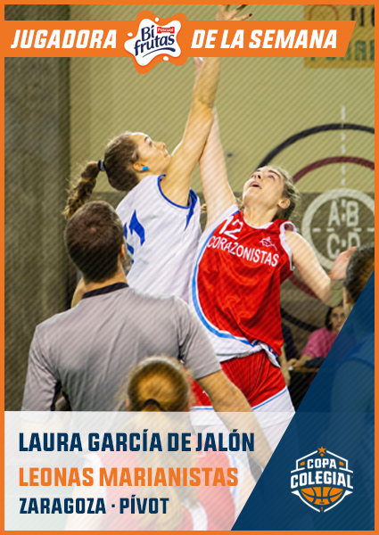 Laura García de Jalón ha ejercido como líder de la manada marianistas en todos los partidos disputados en esta Copa Colegial. Con su actuación ante Cañoneras Corazonistas, la alero de las Leonas se hizo merecedora no solo del MVP de su partido, sino del premio como Jugadora Bifrutas de la Semana, muy destacada respecto al resto de jugadoras que disputaron partidos en estos siete últimos días. La estadística, fría pero certera, dice que con sus 14 puntos y 8 rebotes ante las Cañoneras, Laura acumulaba un +19 de valoración, un gran mérito a nivel personal y a nivel de equipo, que se coloca en la lanzadera para intentar conseguir su primer Estandarte colegial.