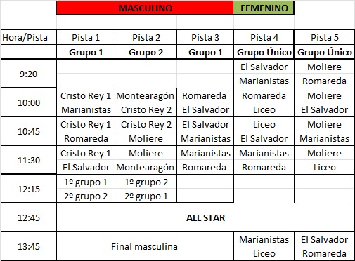 A las 12:45, la Pequecopa parará para poder presenciar el partido de las estrellas colegiales, el All Star Colegial by Caixabank y los concursos de triples y mates. Al finalizar, se jugará la Final masculina y los últimos dos partidos femeninos, que determinarán los campeones de la Pequecopa. Os esperamos el lunes por la mañana en el Colegio Cristo Rey para descubrir a las futuras leyendas del baloncesto colegial de Zaragoza.