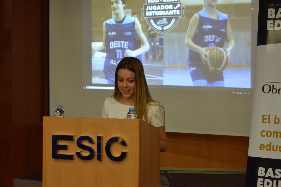 Por supuesto, les tocó el turno a los premiados. Primero fue Adrián Sanjuán quien se dirigió al auditorio. El pívot del colegio Juan de Lanuza señaló que "este es un premio muy especial, porque no solamente tiene en cuenta méritos deportivos sin también académicos. El hacer deporte contribuye a mejorar el rendimiento en la escuela pero, a veces, es dificil compaginarlo y por eso me parece muy bonito que exista un premio que aune ambas cosas".