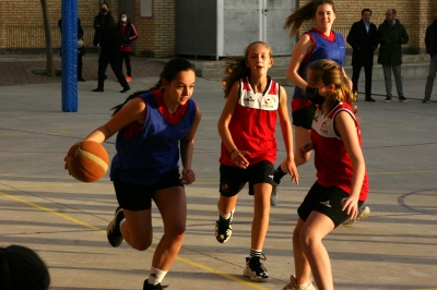Preciosa tarde de baloncesto colegial la que hemos vivido en la pista exterior del colegio Alemán de Zaragoza entre dos colegios que regresaban a la competición tras un año sin disputarla. Mucha expectación en el colegio local para seguir las evoluciones de las Panteras, el equipo femenino que, cargado de ilusión, debutaba en la competición.