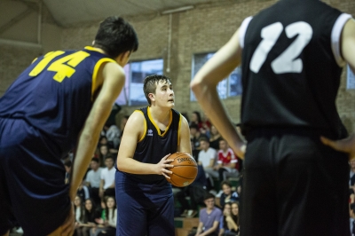 Con la grada dividida entre las hinchadas de ambos colegios y un ruido cada vez mayor en el pabellón, el tercer cuarto denota que llegan los momentos importantes, aquellos en que cada detalle puede suponer tocar con la llema de los dedos la Gran Final. Dani Sanz, Jugador Bifrutas de la Semana pasada, toma el mando de la situación y, bien apoyado por un Piazuelo muy activo y acertado, pone en órbita a sus Raptors. Pero en el duelo de capitanes, aparece en el lado contrario un Diego Cortés que no envidia en nada a su contrario: 7 puntos del número 12 de Rosa Molas para mantener a su equipo en el partido, aunque el marcador indica ya un 23-36 que empieza a pesar como una losa a los chicos de Dani Bosch.